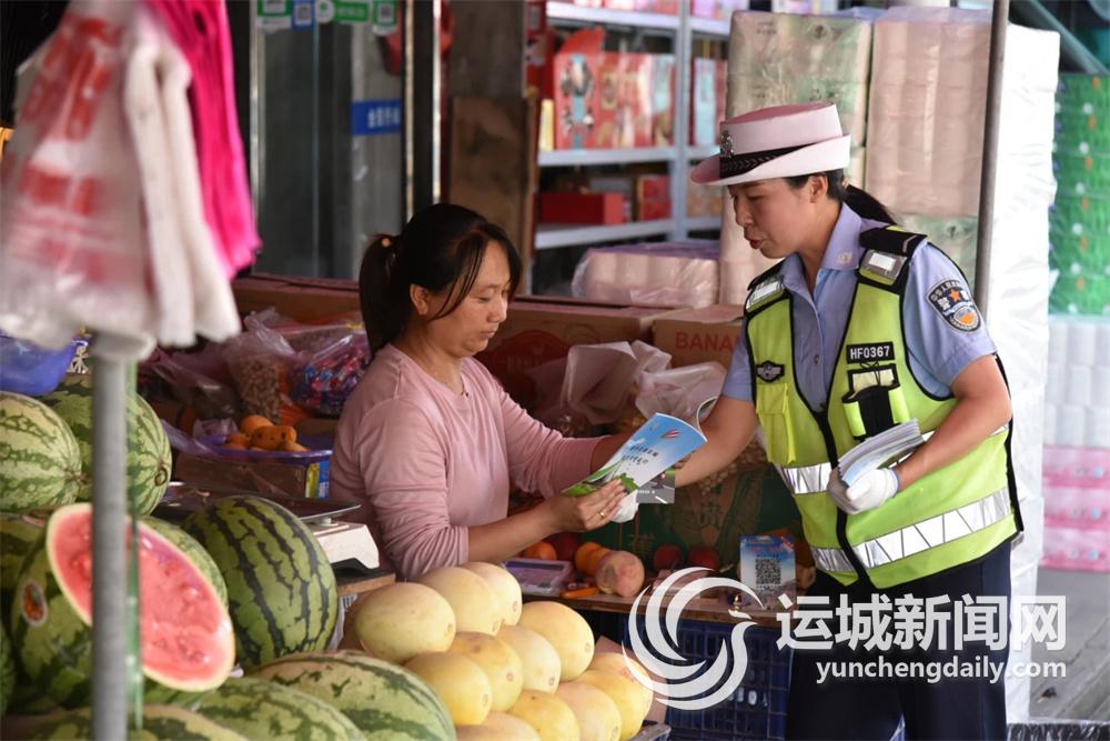 “电动三轮车是咱们很多蔬果商户每日经营的必需品,因此,交安知识就更应该牢记心中,时时遵守。”在辖区农贸市场,该大队民辅警面对面向现场群众和商户讲解了夏季出行交通安全常识,并结合近期涉及农用车、面包车、电动三轮车的典型交通事故案例,详细阐述面包车超员载客、农用车违法载人、驾乘摩托车不佩戴安全头盔等重点交通违法的危害性。