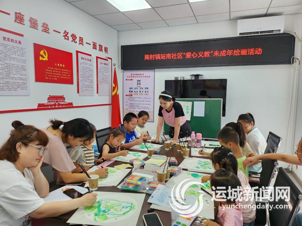 运城晚报讯(记者 李爽)为丰富辖区居民的文化生活,激发大家的创作灵感,提升大家的绘画技能,7月18日,盐湖区陶村镇站南社区在辖区开展了“爱心义教”未成年人绘画活动。一抹水彩,一点创意,描绘出一个五彩斑斓的世界。