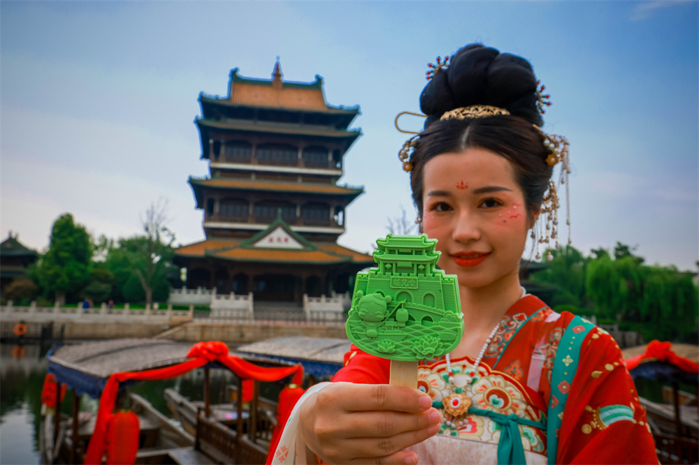 7月20日在山东省枣庄市台儿庄古城拍摄古建筑造型文创雪糕。