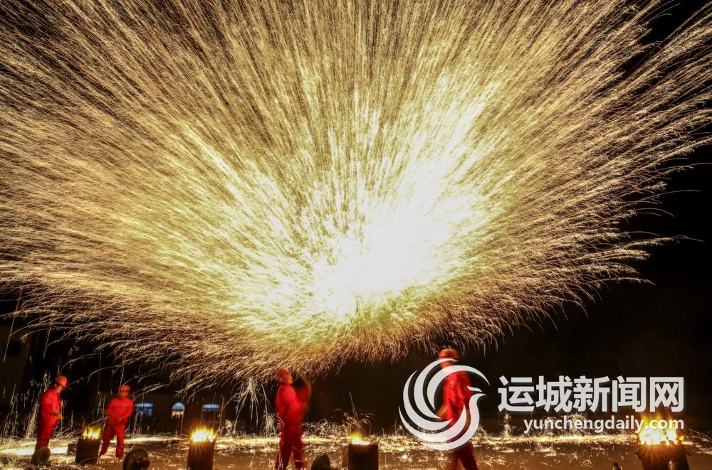 7月21日晚,稷山国家板枣公园秋霞楼广场举行非遗“打铁花”表演。