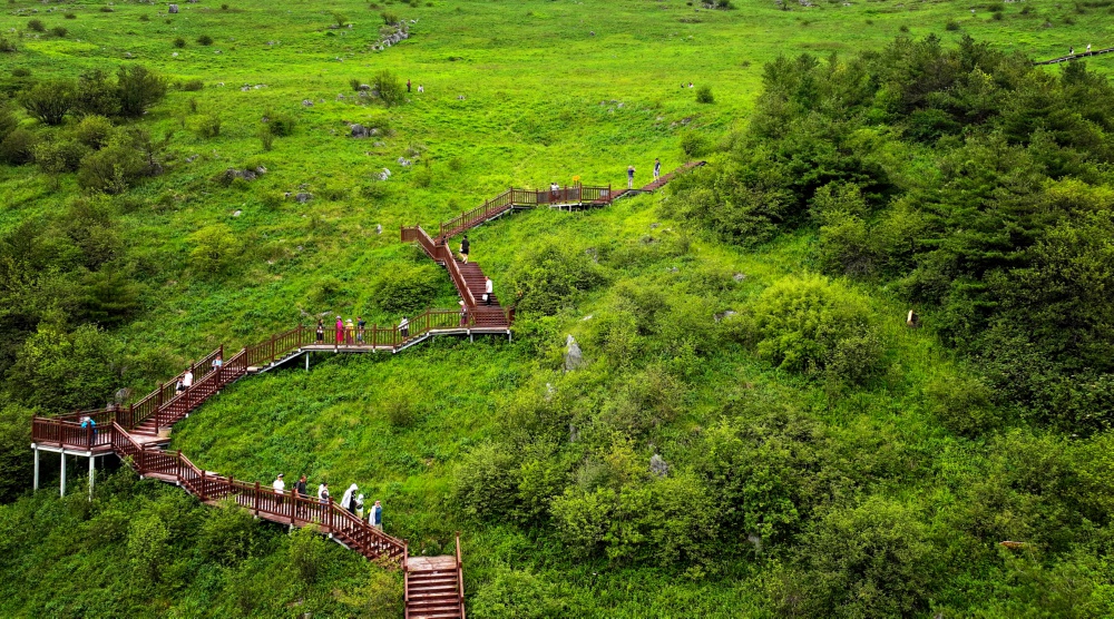 游客在陕西省汉中市留坝县紫柏山国家森林公园游玩(7月23日摄)。近年来,留坝县充分利用清凉山水等自然资源,围绕高山景区、研学旅游等不断丰富旅游业态,以“凉资源”激活“热经济”,吸引游客前来度假避暑。