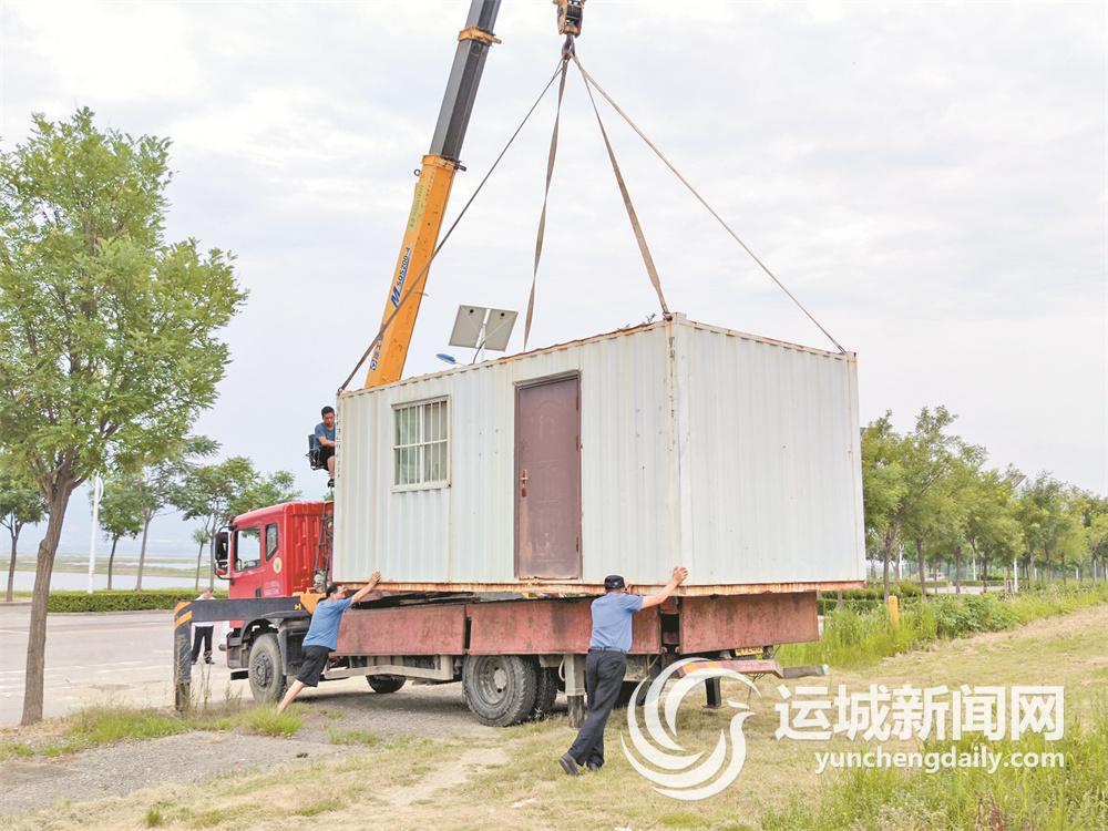 运城晚报讯(记者 祁克宁 见习记者 赵雪)7月24日,市城市管理局综合行政执法队联合市盐保中心和山西焦煤运城盐化集团等,对盐化一厂、盐化二厂、滨湖大道等盐池周边16处无用建筑及临建彩钢棚进行了集中拆除。