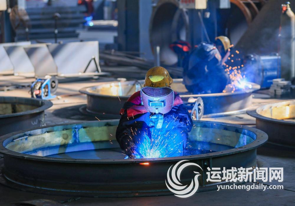 7月26日,位于盐湖高新区的山西安运风机有限公司生产车间,工人在生产风机配套组件。