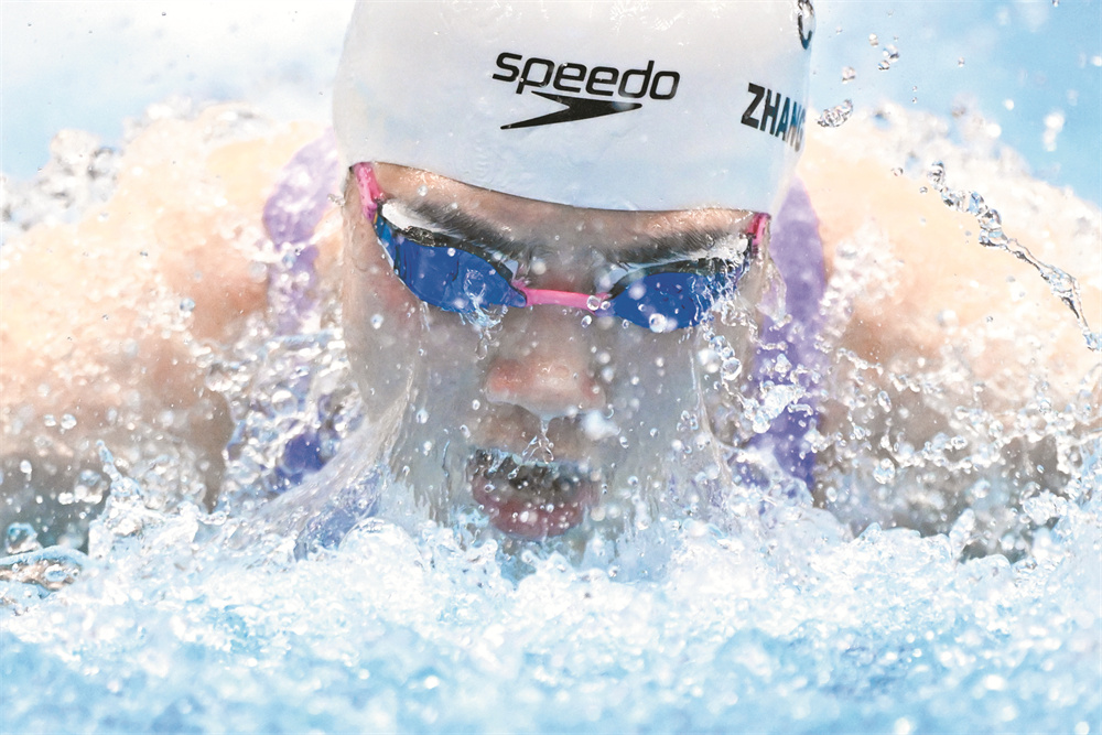 7月26日,中国队第三棒选手张雨霏在决赛中。