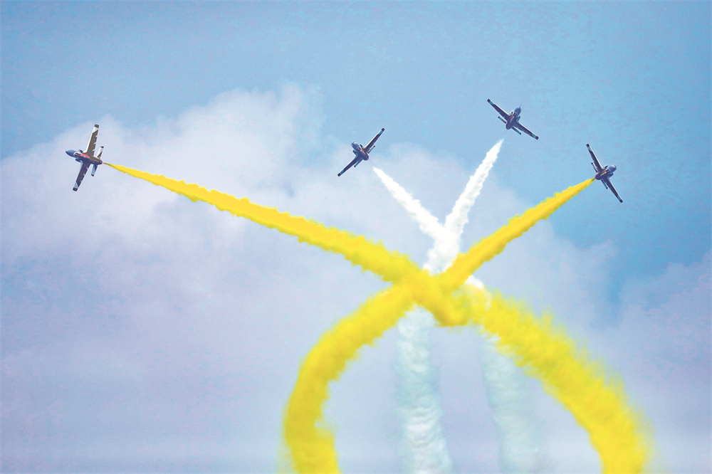 作为中国空军“学院派”飞行表演队,空军航空大学“红鹰”飞行表演队,以“飞出惊险、飞出极限、飞出震撼”而著称。在本次航空开放活动中,“红鹰”飞行表演队在保留三机尾旋、双机旋转木马、八机斤斗等特色动作的同时,新增七机编队等表演内容,集中展现了新时代飞行教官的教学能力和技战术水平。