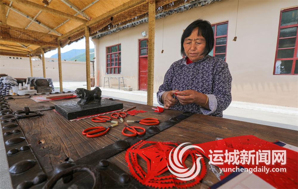 马家沟村农耕文化体验基地的工作人员在准备剪纸小样
