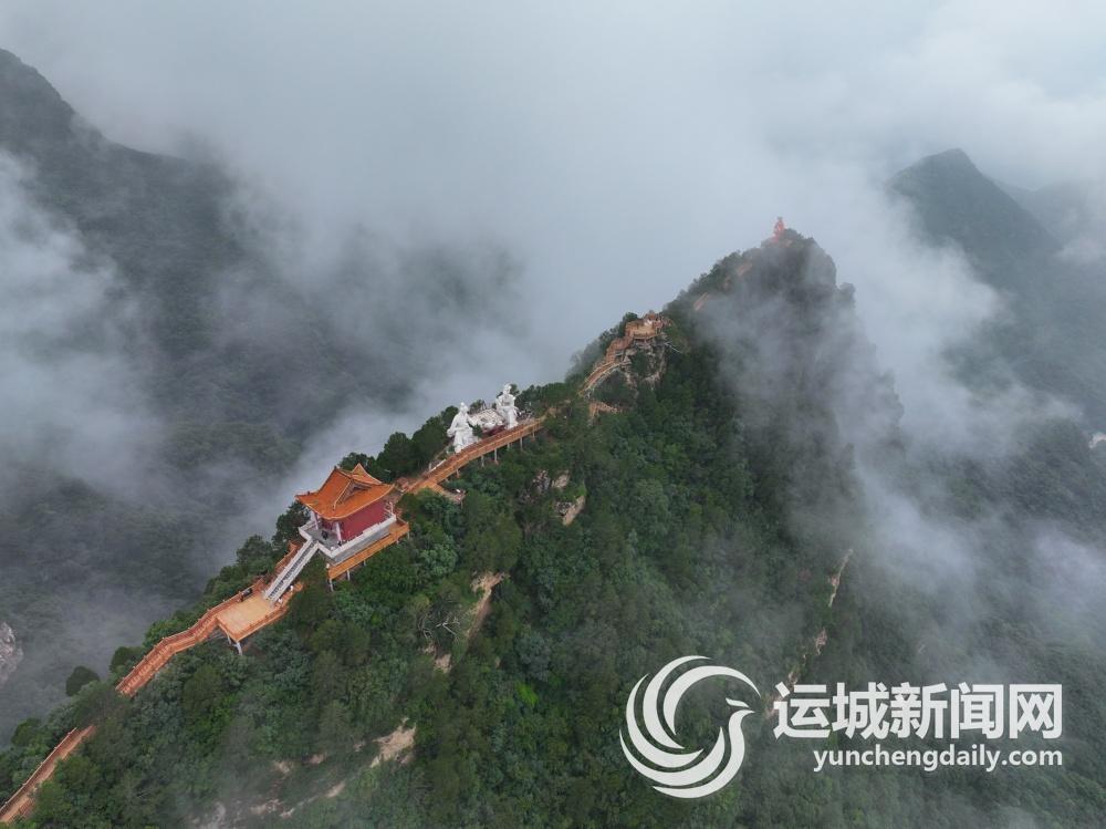 7月30日,受降雨天气影响,永济市五老峰国家森林公园出现壮观的云海。从高空俯瞰,云海翻涌,群山隐藏其中,若隐若现,宛如仙境。