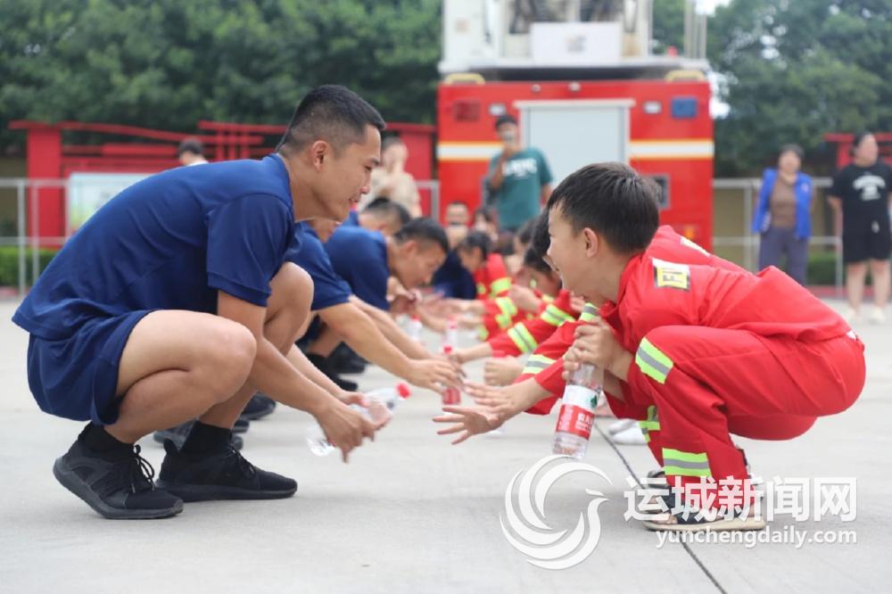 运城晚报讯(记者 寻霄)7月27日上午,芮城县消防救援大队联合永乐社区举办了“蓝焰守护 七彩假期”消防研学夏令营。辖区50余名中小学生穿上消防救援服,化身“小小消防员”,通过参观营区、趣味课堂、游戏互动等环节,沉浸式体验营区生活,学习安全知识,度过平安暑假。