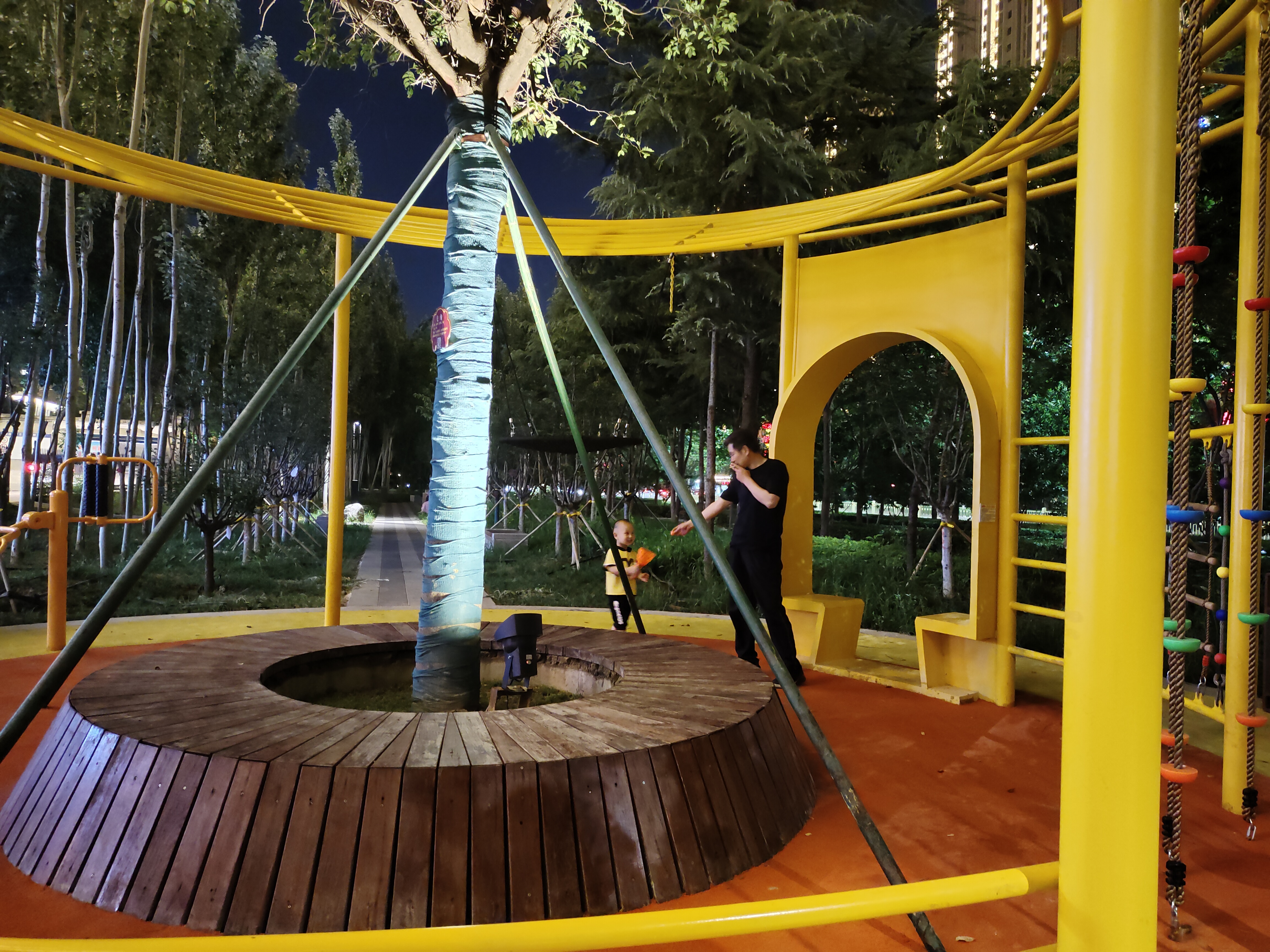 “你看这里的彩虹长廊夜晚颜色好漂亮”“增加了庭院灯、线条灯这些光源,晚上出门也会方便很多”……为提升美化亮化水平,改善城市夜景环境,该项目施工过程中还实施了夜间亮化工程,扮靓城市夜景的同时,也为市民营造安全、舒适的夜间出行环境。