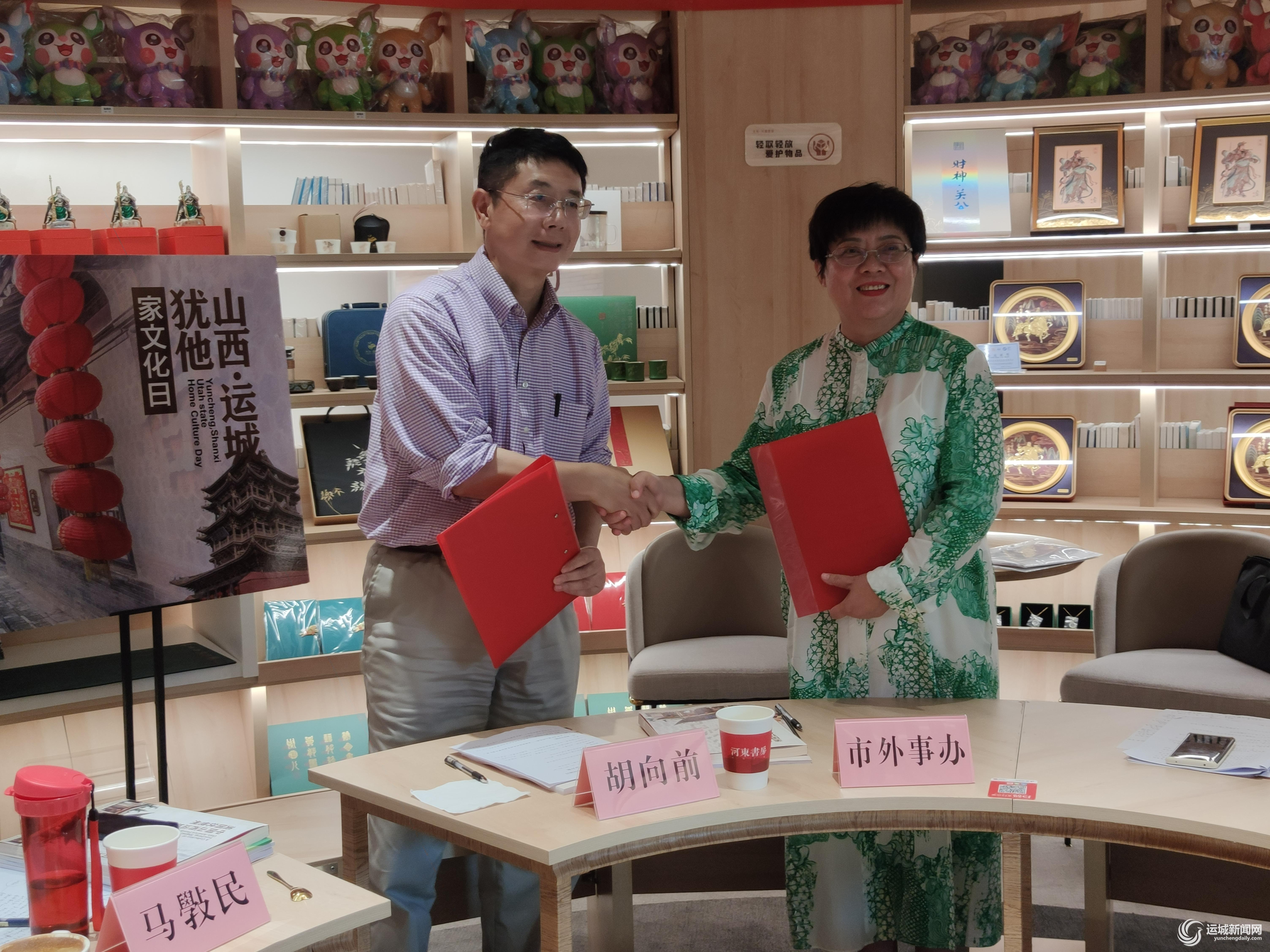 会议发布了《中国山西运城-美国犹他州家庭故事合集》,并向胡向前一行赠送了《中国山西运城-美国犹他州民间家庭故事合集》《典藏古河东丛书》,助推运城“家文化”故事走进更多家庭;为正邦家庭教育指导中心颁发了荣誉证书和山西运城-犹他家文化国际人文交流基地牌匾,进一步发挥社会团体力量,加强民间交流。运城市人民对外友好协会还与美国犹他-山西友好交流合作协会签订了《支持双方民间人文交流备忘录》,双方将不断拓宽交流领域,提升交流层次,丰富交流内容。
