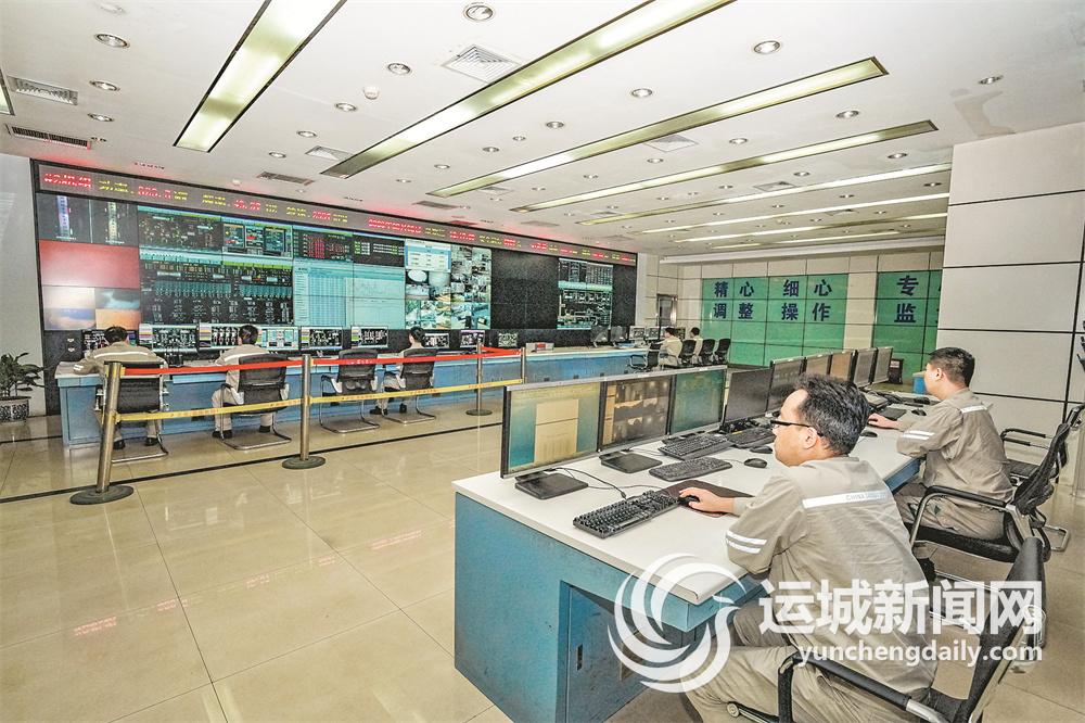 陕煤电力运城有限公司厂区集控室内,工作人员在监测机组运行数据。记者 陈方斌 摄