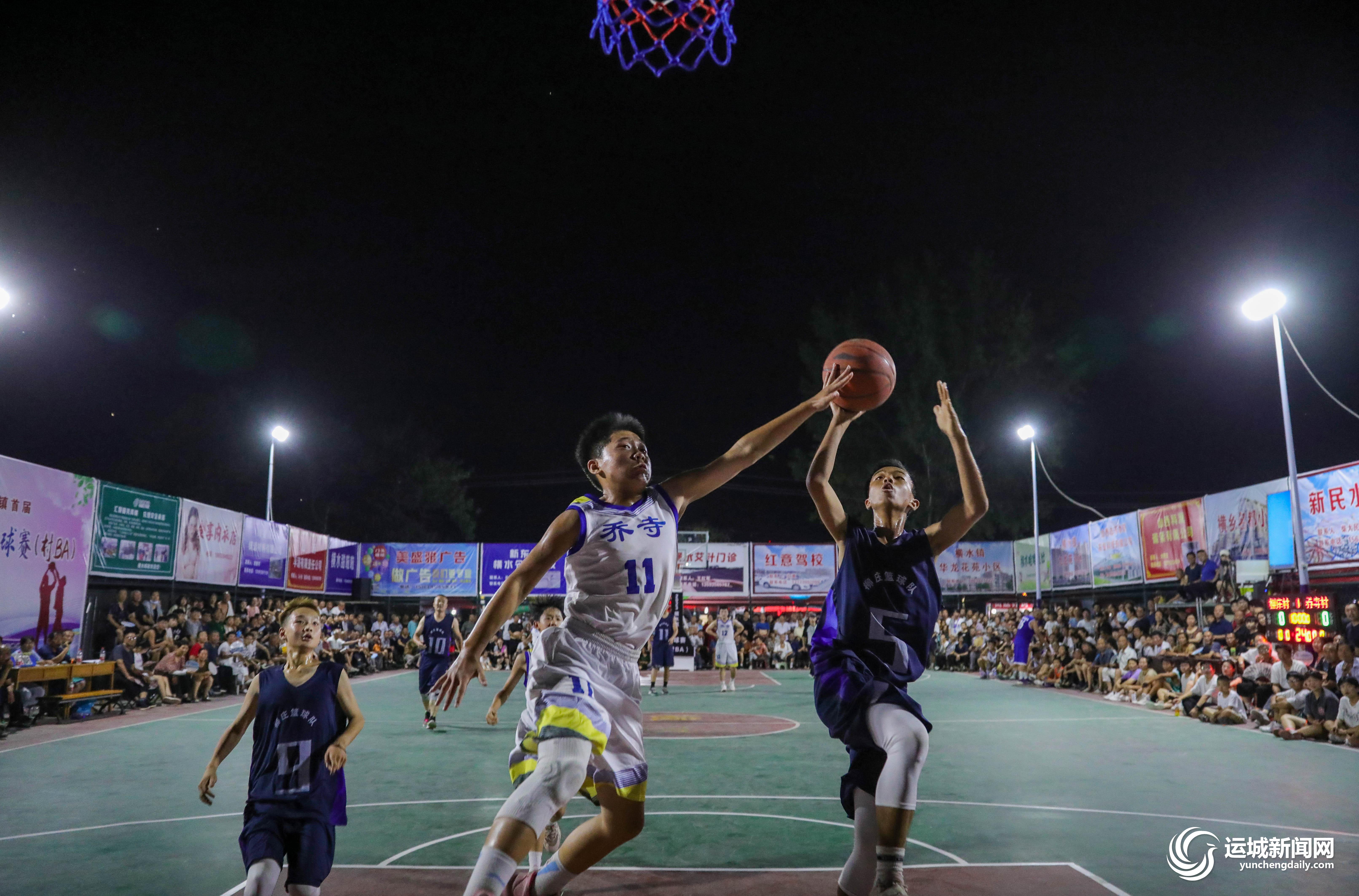 8月4日晚,参加2023年绛县横水镇首届“邮储银行杯”篮球赛的柳庄村代表队和乔寺村代表队,在横南村球场上进行激烈角逐。