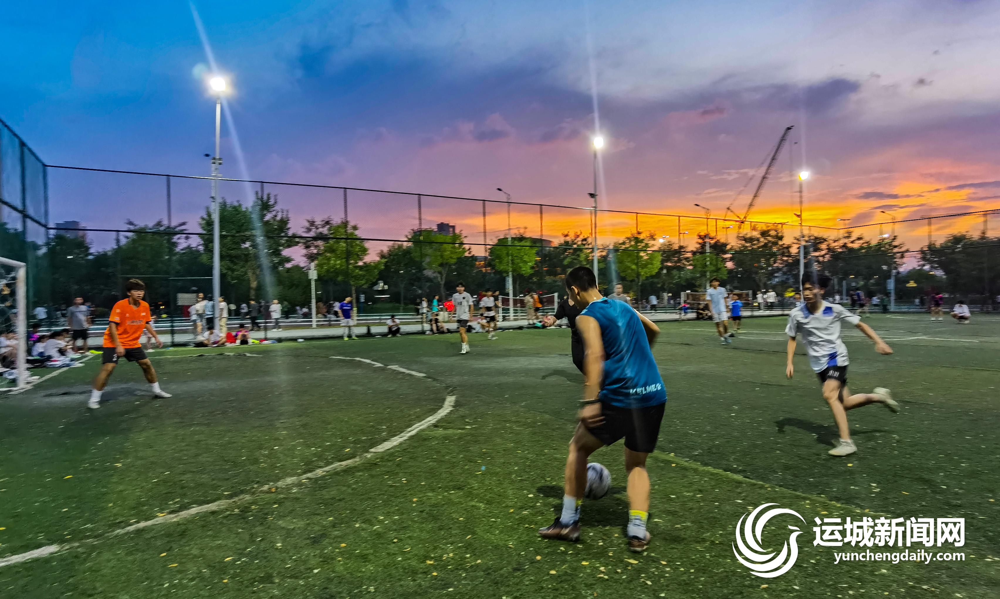 8月3日傍晚,在市区体育公园内,市民们或进行球类运动或步行健身锻炼,享受夏夜运动的乐趣。