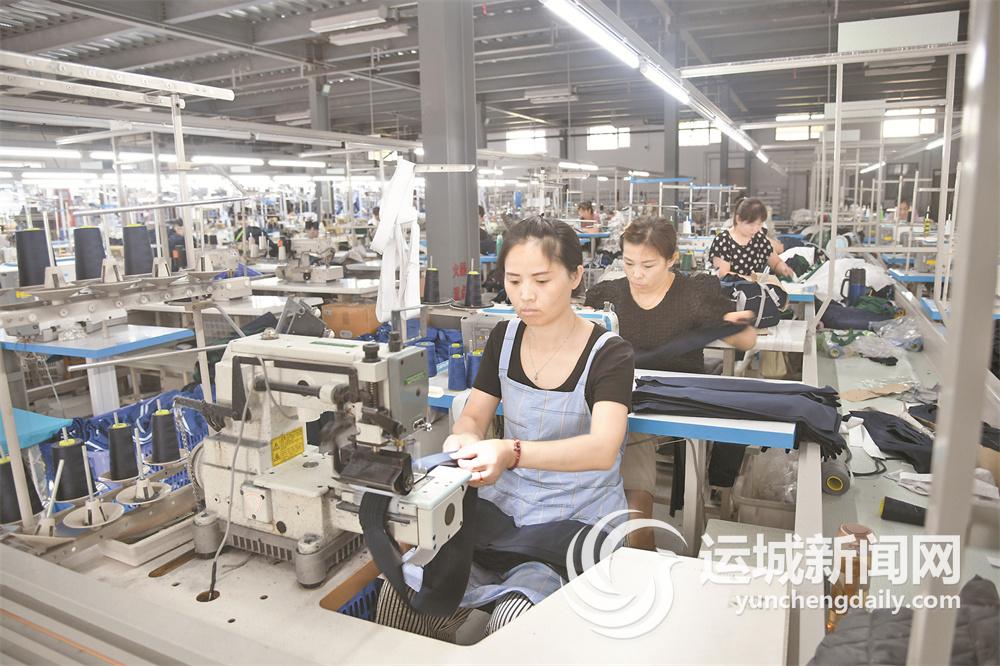 8月7日,闻喜县一家制衣公司的生产车间,工人在赶制校服。