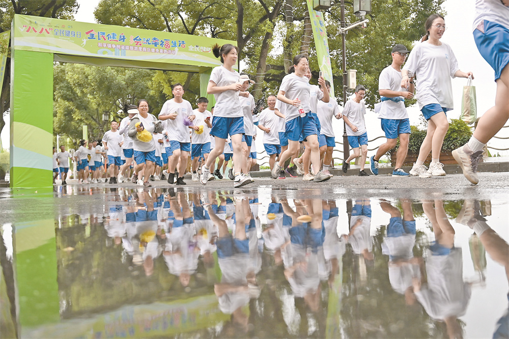 当日,浙江省湖州市南浔区和孚镇举行“全民健身日”晨跑活动,路线为长约4公里的乡村道路,吸引200余名跑步爱好者参加。 新华社记者 黄宗治 摄