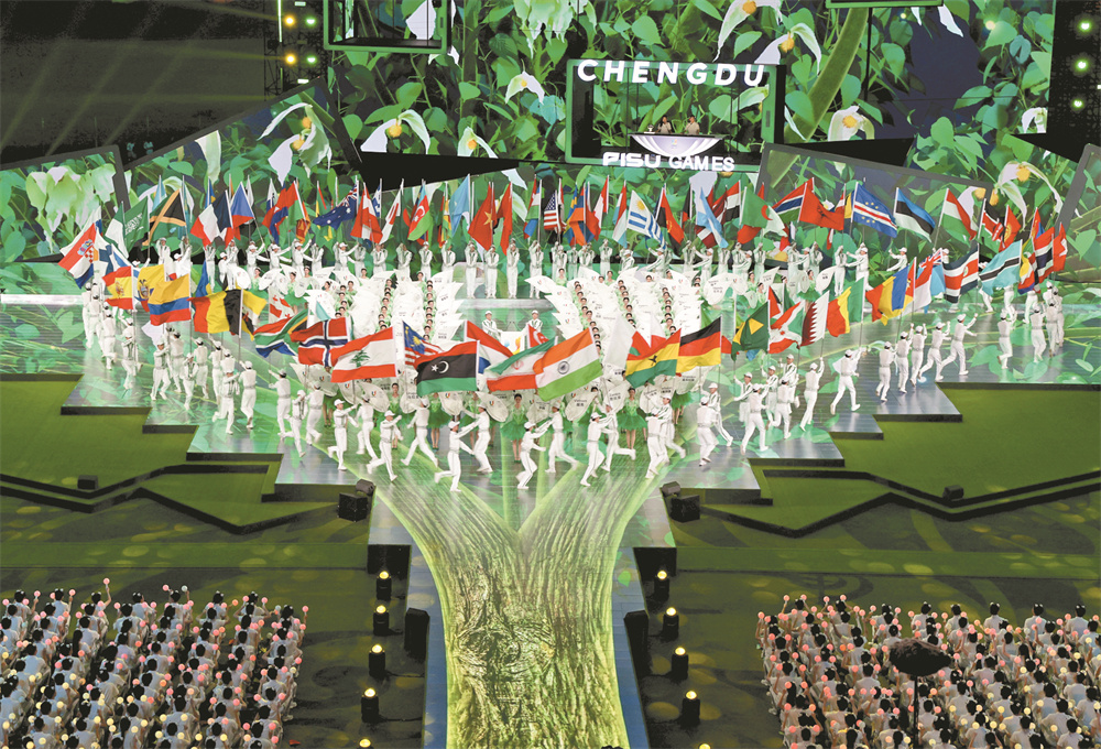 “成都成就梦想”。在过去12天里,来自113个国家和地区的6500名运动员展现青春力量,绽放青春光彩,以饱满的热情和优异的状态,谱写了青春、团结、友谊的新篇章。中国秉持简约、安全、精彩的办赛理念,认真兑现庄严承诺,赢得了大体联大家庭和国际社会的广泛好评。中国体育代表团获得103枚金牌、178枚奖牌,名列金牌榜和奖牌榜首位。