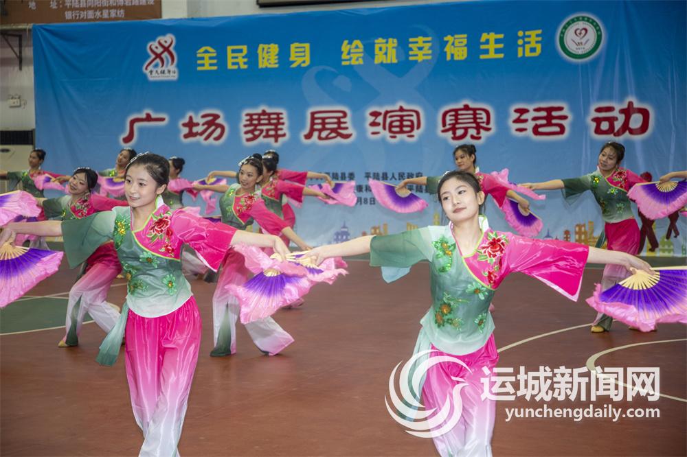 ▲8月8日,平陆县举办“全民健身,绘就幸福生活”广场舞展演赛。全县9个乡镇和5个社区共19支舞蹈队参赛。