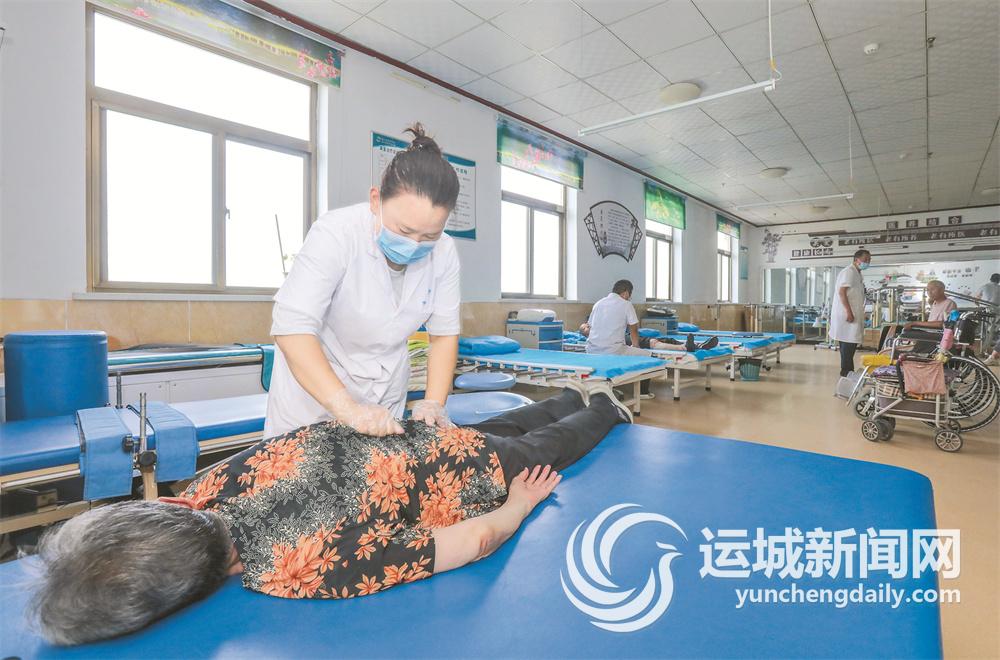 运城市枫之逸养老服务中心护理人员为老年人做康复按摩