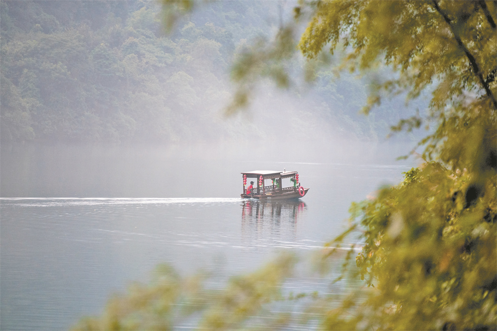 8月9日,游船行驶在资兴市东江湖风景区小东江上。