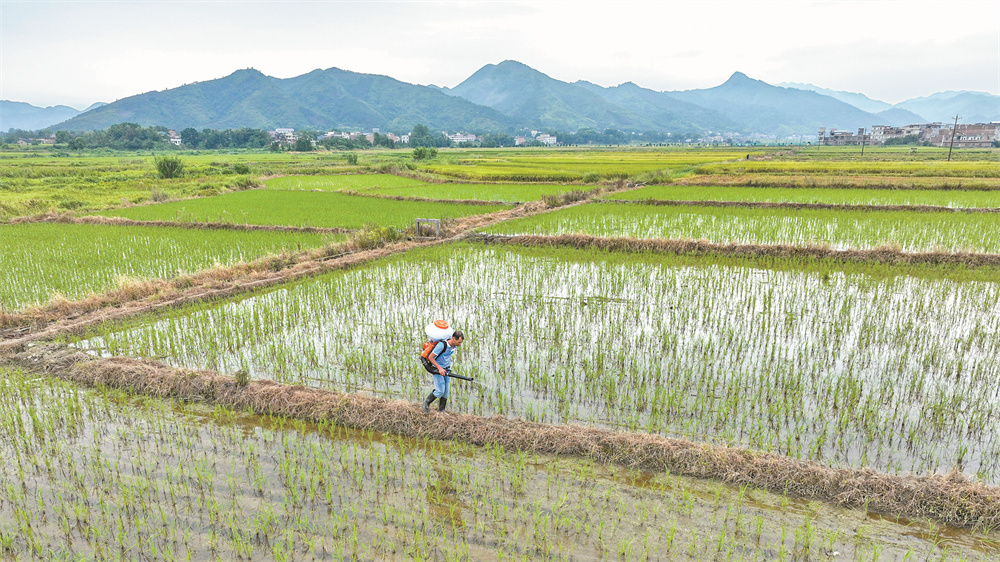 时下,正是水稻管护的关键期,农民抢抓农时进行补苗、施肥、除草等田间管护工作,为秋粮丰收打下基础。