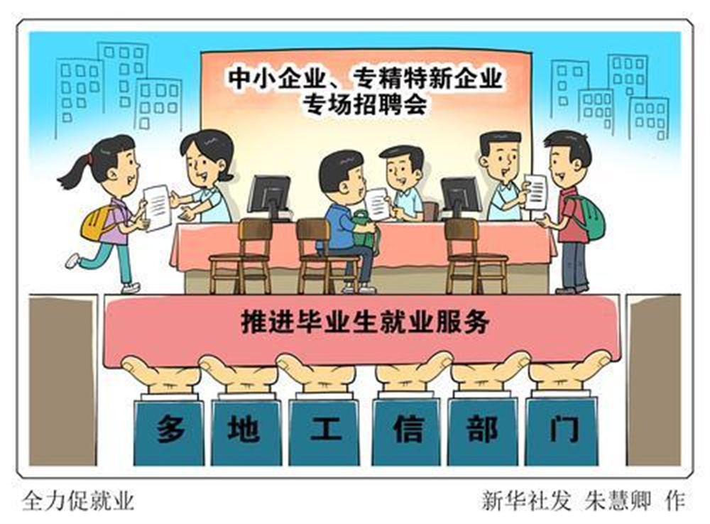 中小企业是吸纳就业的重要阵地。数据显示,2023年全国高校毕业生达到1158万人。各地工信部门落实落细就业优先政策,积极推动各级企业主管部门,举办中小企业、专精特新企业专场招聘会等,挖掘就业潜力,多措并举搭平台、扩岗位、稳就业。