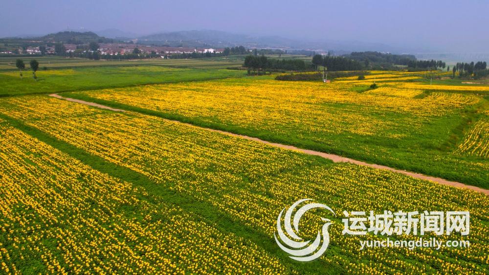初秋时节,垣曲县古城国家湿地公园的千亩油葵长势良好(8月12日摄)。