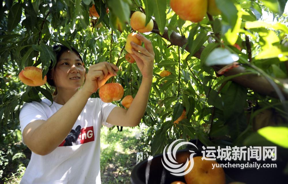 盐湖区龙居镇许冰家庭农场里,农民在采摘油蟠桃。 本报记者 金玉敏 摄