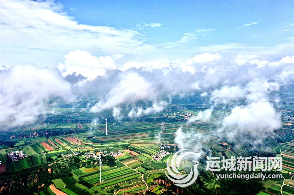 当日,平陆县张店镇的村庄、田园、公路、绿树等,在云雾下若隐若现,构成了一幅秀美的乡村田园画卷,令人流连忘返。 特约摄影 郝健