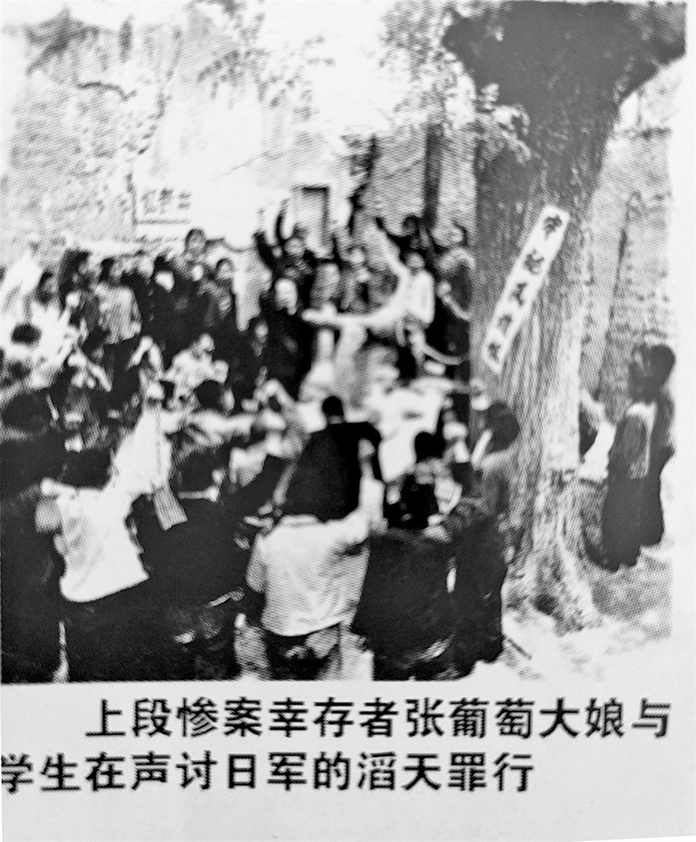 上段惨案幸存者张葡萄大娘与学生在声讨日军的滔天罪行