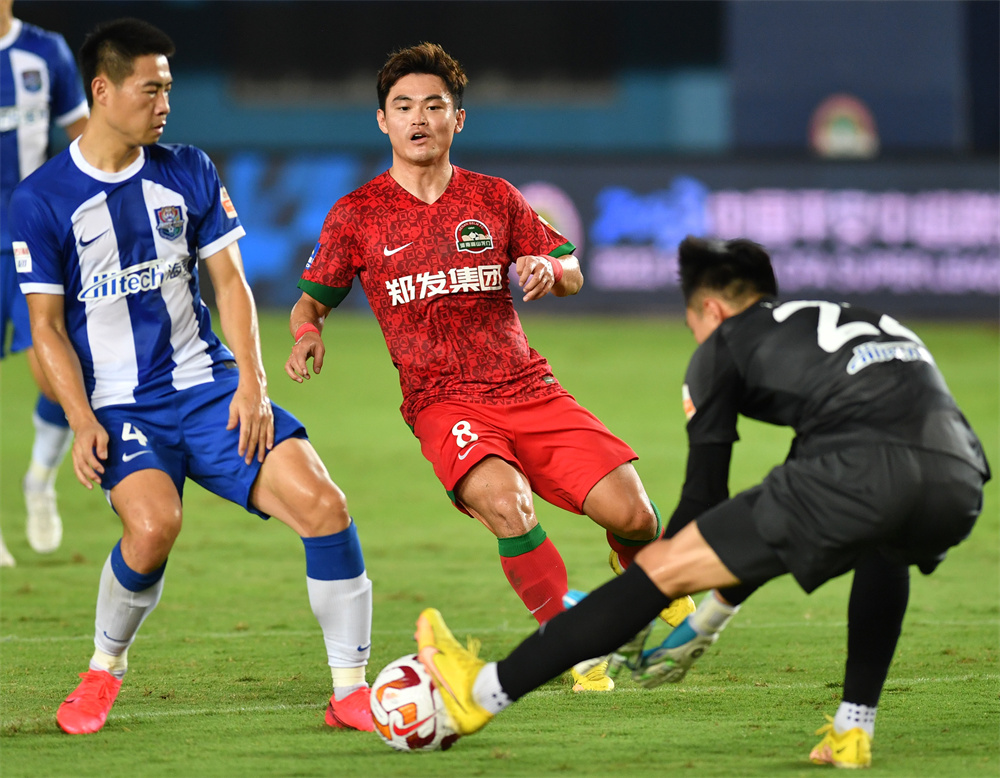当日,在河南郑州举行的2023赛季中国足球协会超级联赛第22轮比赛中,河南队主场以1比0战胜天津津门虎队。新华社记者 李嘉南 摄