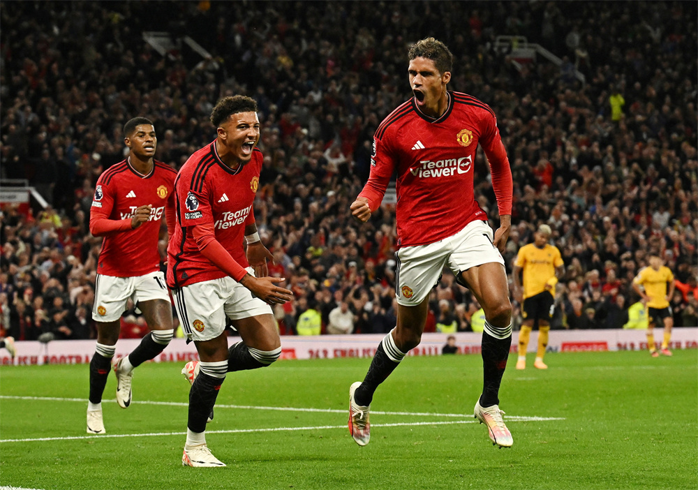 当日,在2023-2024赛季英格兰足球超级联赛首轮比赛中,曼联队主场以1比0战胜狼队。 新华社/路透