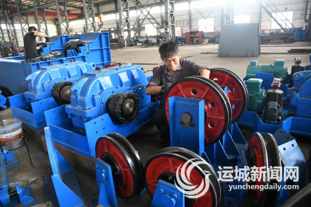 8月16日,位于闻喜县的山西龙鼎沅重工装备有限公司生产车间,工人在生产洗选煤成套机械设备。