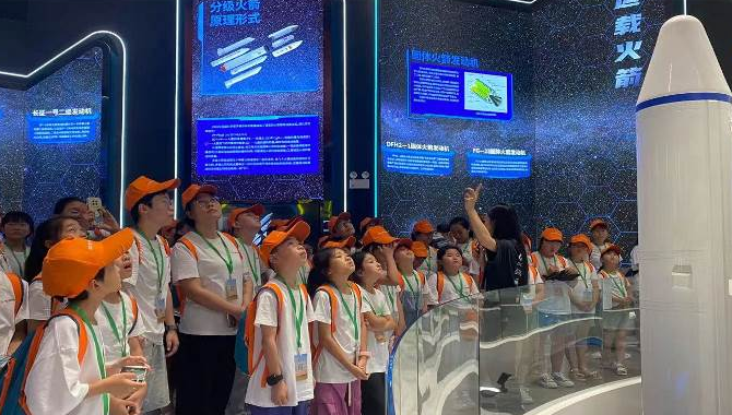 孩子们走进了航空博物馆,跟随着讲解员的脚步,同学们了解了中国航天工业从无到有的光辉历史,见证了一代代航天人创造出的光辉成果。