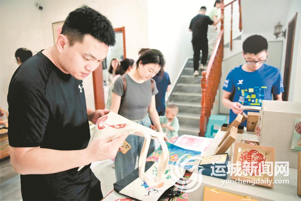 剪纸爱好者参观剪纸文创作品