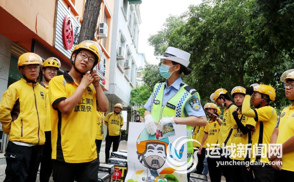 为提高外卖配送行业人员的交通安全意识,8月15日,市公安局盐湖分局交警大队事故预防和宣传科民警走进辖区运城市新邦物流美团外卖公司开展约谈和交通安全宣传活动。