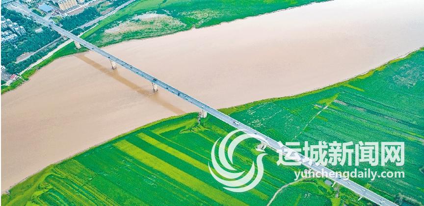 初秋时节,平陆县境内黄河滩地上,长势喜人的庄稼和黄河水交相辉映,从空中俯瞰,雄壮的黄河大桥一桥飞架南北,展现出一幅生机盎然的绿色生态画卷。