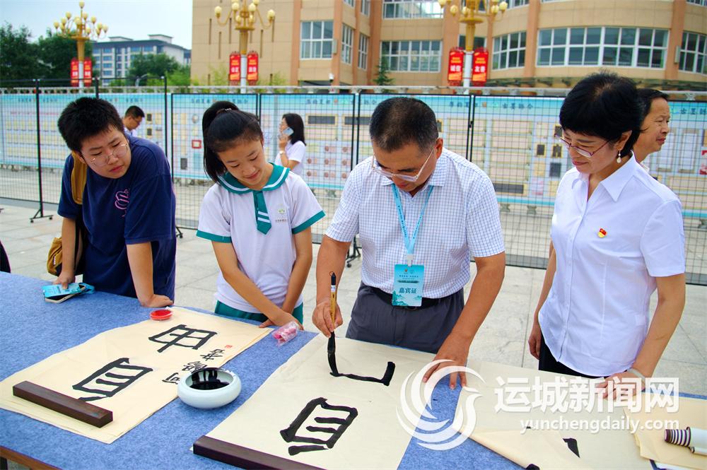 运城晚报讯(记者 范楚乔)名家学生结对交流,播撒文化之种。8月23日,“厚韵夏都·古墨铄今”第三届山西(夏县)卫夫人书法艺术节——“结对子·种文化”书法名家进校园活动在夏县实验中学举办,来自全国的书法名家与我市20余名中小学生进行书法艺术交流。