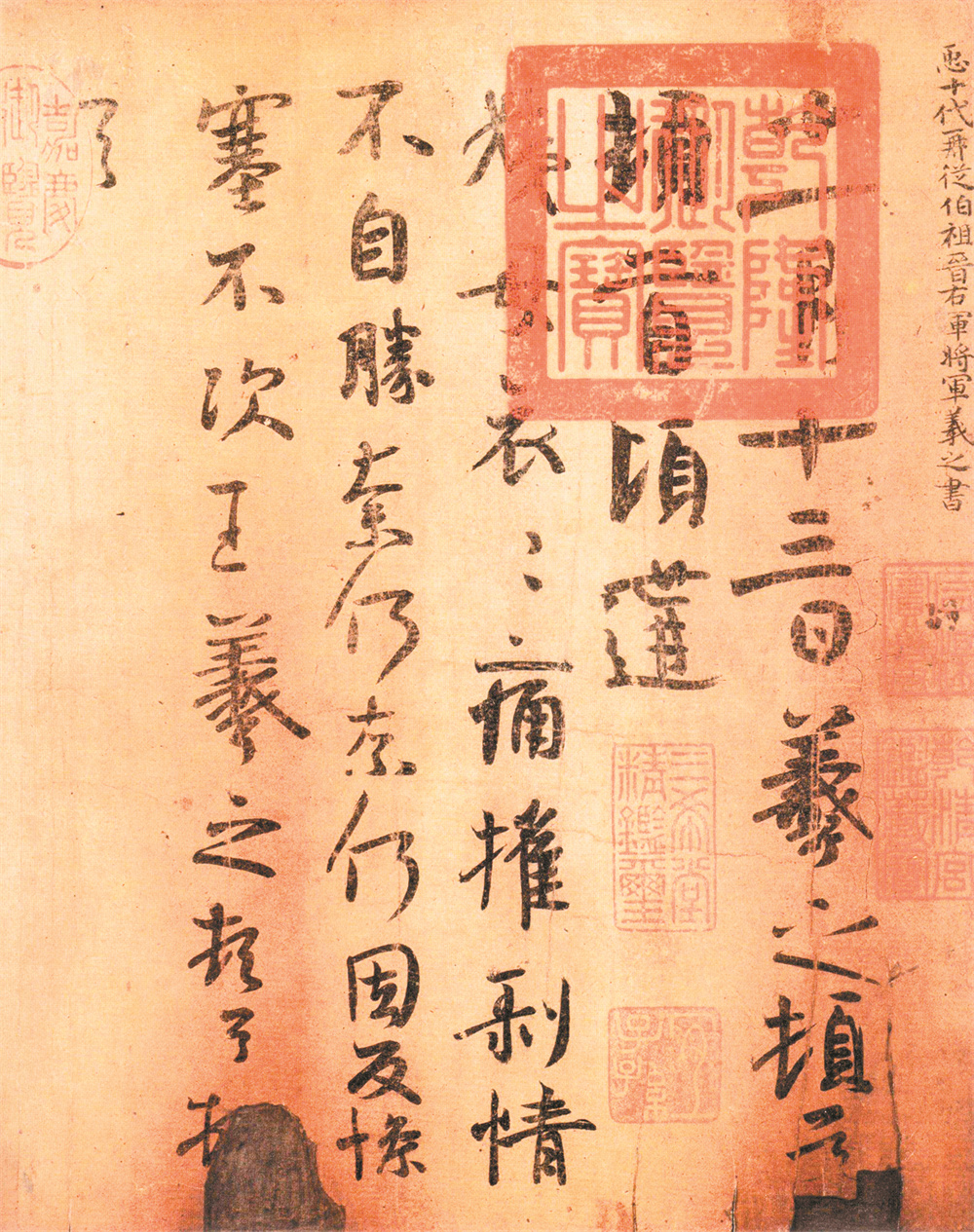 正所谓“今不逮古,古质而今妍”,亦刚亦柔的王羲之书法同时可说是亦古亦今。王羲之书风的“今”意,在于它妍媚流畅的行草书走势打破了隶书系统的迟缓;王羲之书法中的“古”意,则体现在许多字的写法还保留了浓厚的隶书意趣,尤其《姨母帖》《初月帖》中,用笔的迟涩、厚实,以及隶书横画取横势不取纵势的写法,字形扁平而不张扬,都展现出质朴敦厚的篆隶遗韵。应该说在东晋时期,王羲之的书法是承上启下,兼具古今意趣的典型。
