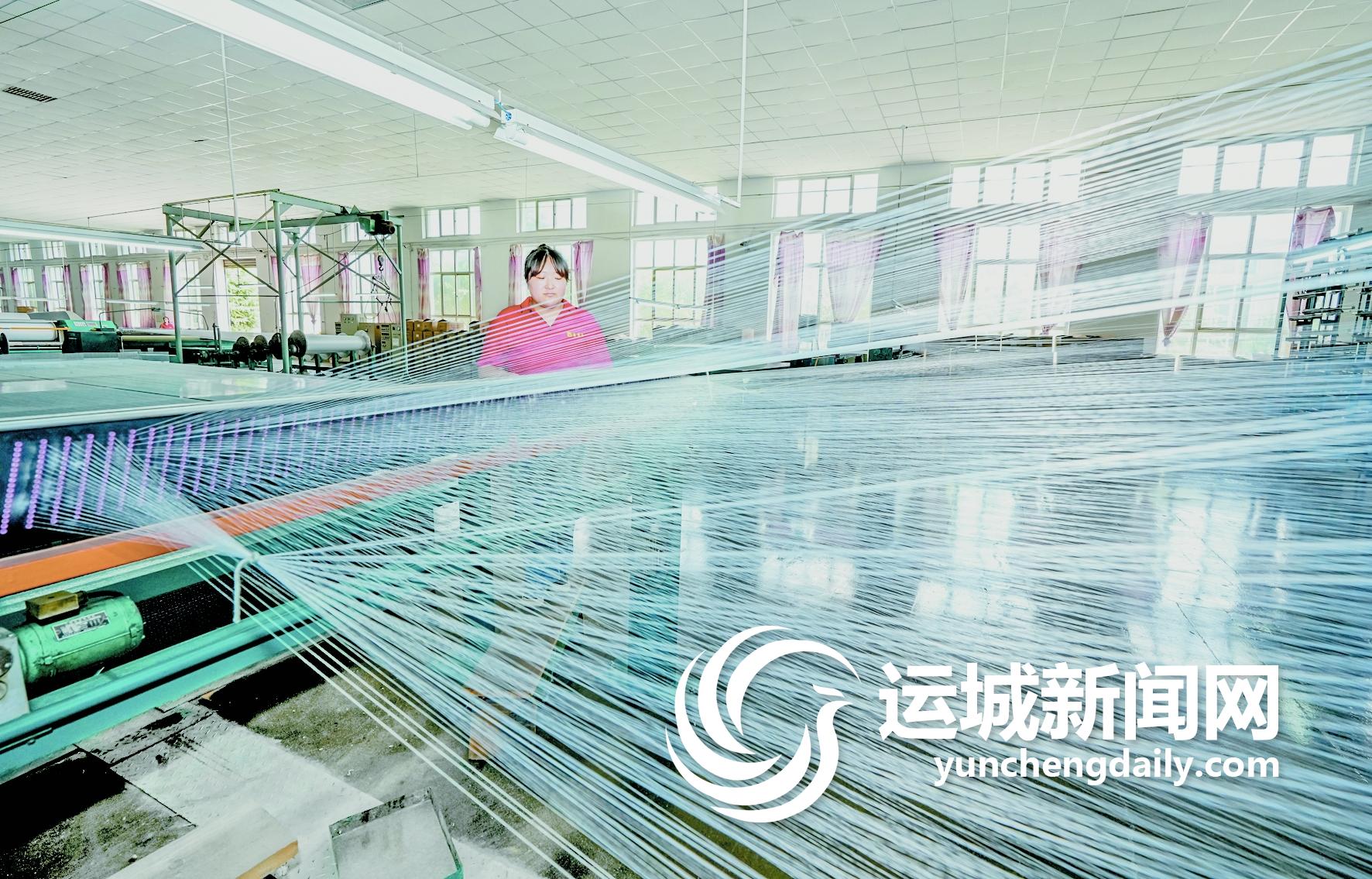 8月21日,在稷山县唐晋新材料科技有限公司纺织生产车间内,工人在生产出口订单。