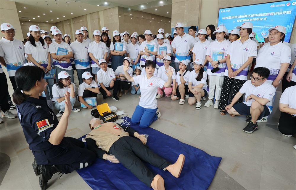 近日,杭州亚运会湖州赛区200多名城市侧志愿者在浙江工业大学莫干山校区进行岗前集中“充电”,学习通用礼仪、应急处置等知识,确保以最佳状态为亚运会提供规范、专业的志愿服务。