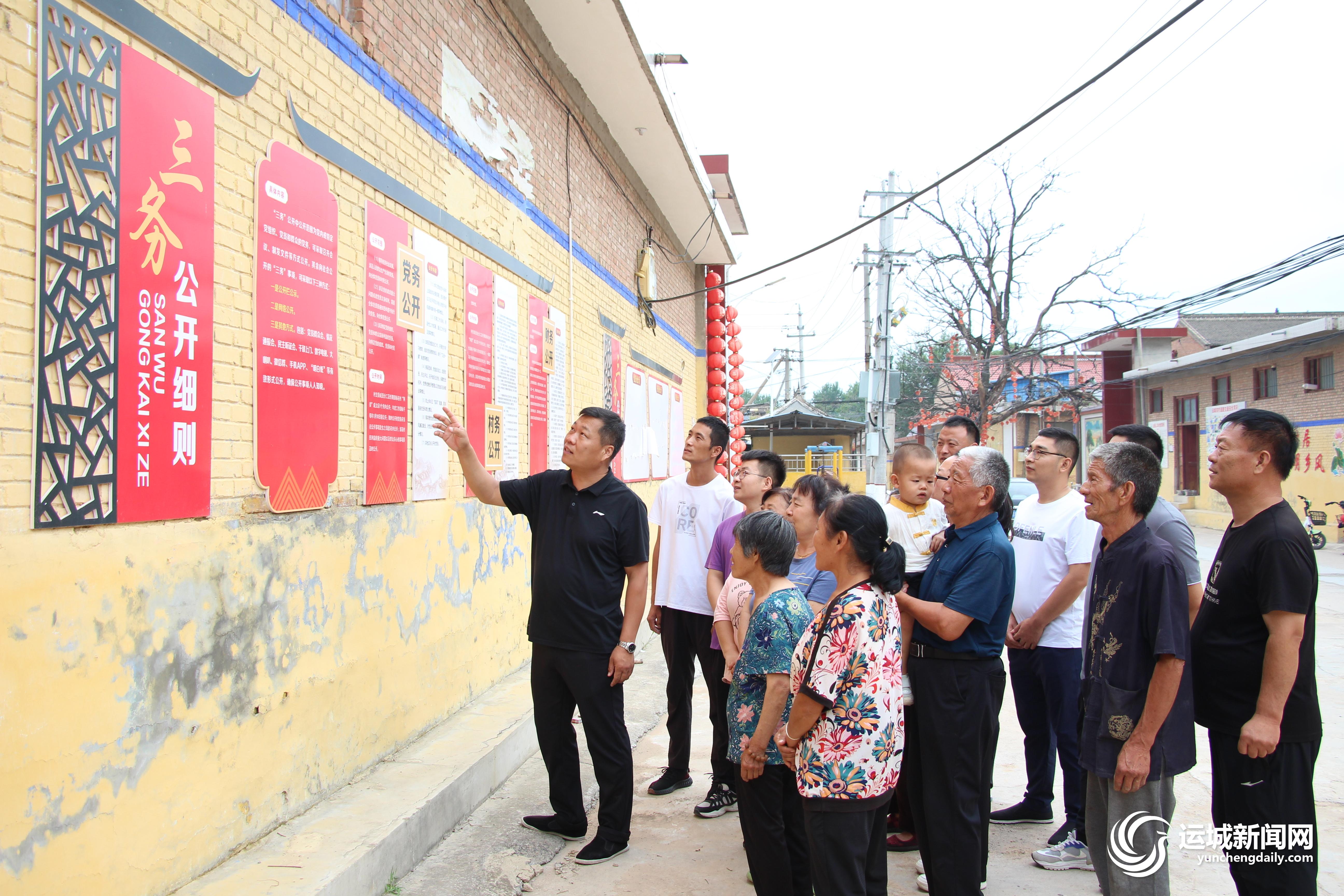 近日,在闻喜县裴社镇裴社村清廉村居一条街,居民们在观赏清廉村居文化墙。