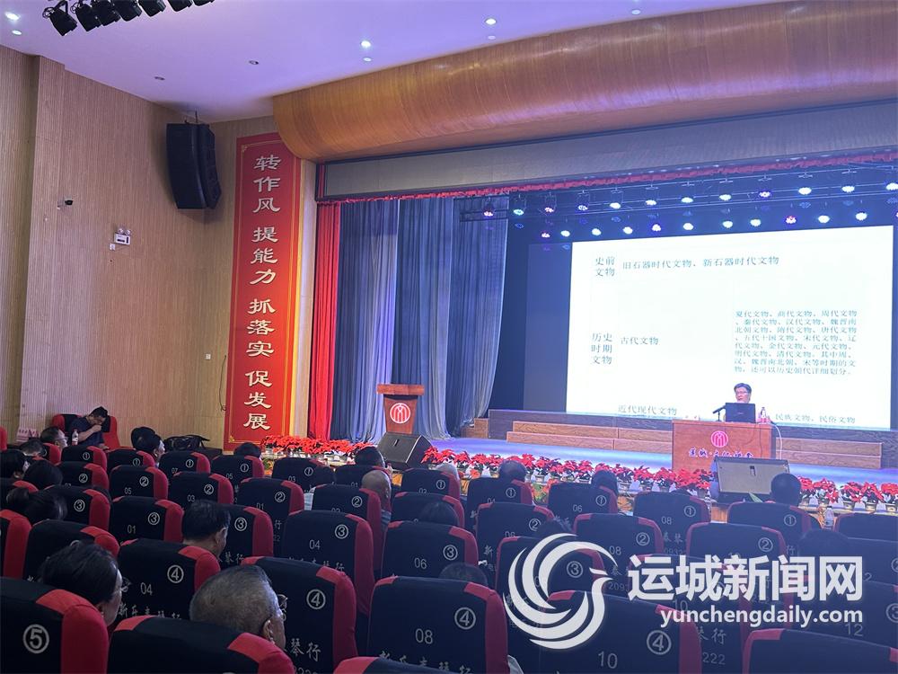 讲座上,卫龙以自己多年来从事文物保护工作的经验,立足运城文物资源优势,从“文化与文明”“传统文化”“优秀传统文化”“文化遗产”“新时代文物工作方针”“河东文化”等方面,对运城文化和文化遗产进行了系统展示和梳理,进一步说明了运城在中华文明发展进程中的重要地位。