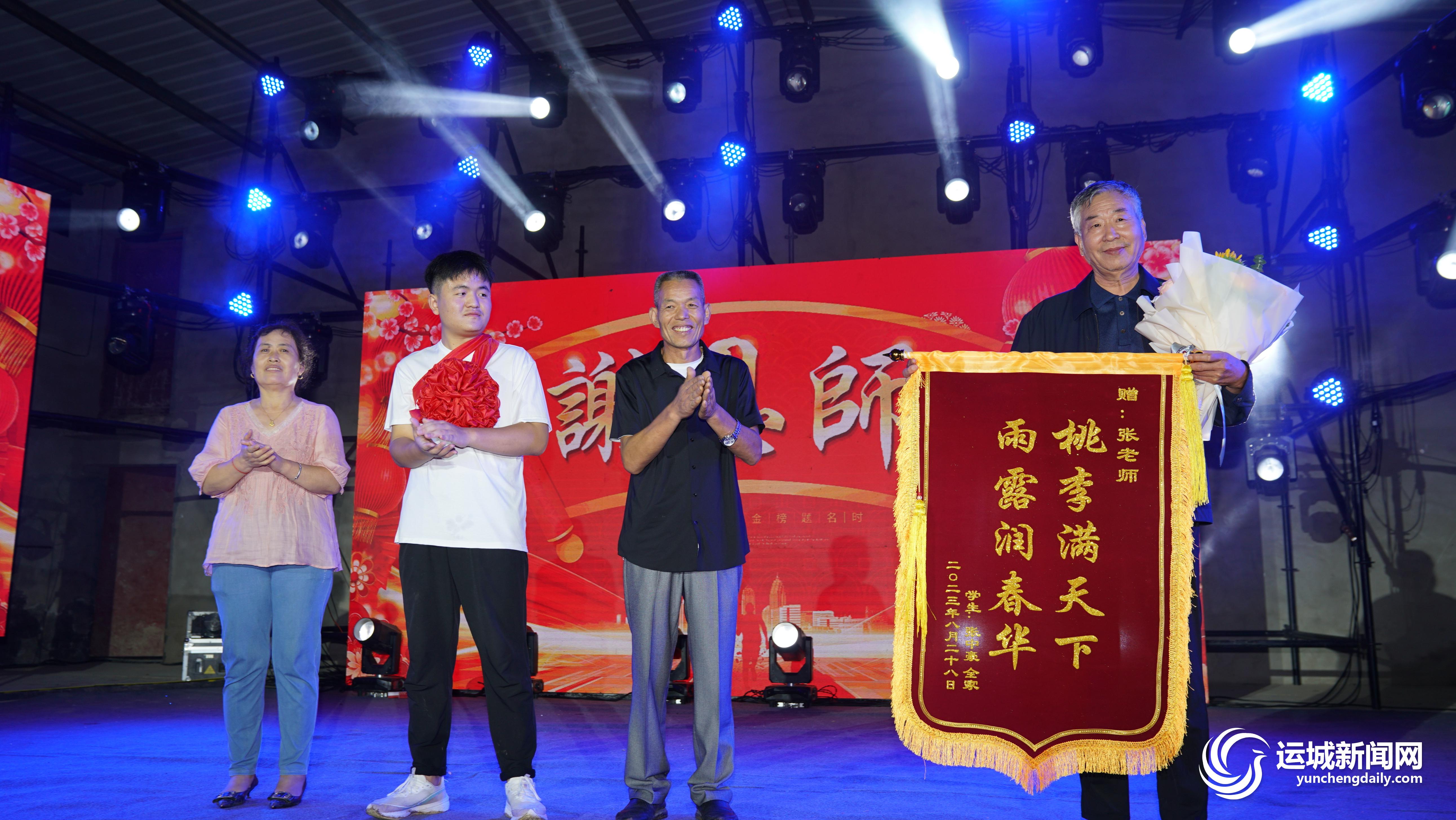 8月27日,考上太原师范学院的盐湖区金井乡卫褚村张中豪同学及家长,将一面写有“桃李满天下 雨露润春华”的锦旗送到老师手中,以感谢老师的辛勤培育和付出。老师激动地说:“家长的认可是对学校及老师最大的肯定与鼓励。”