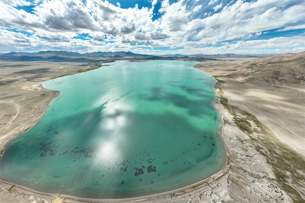 别若则错,位于西藏自治区阿里地区,海拔约为4500米。八月的别若则错,湖畔动物成群,风景秀丽。 新华社发(旦增努布 摄)