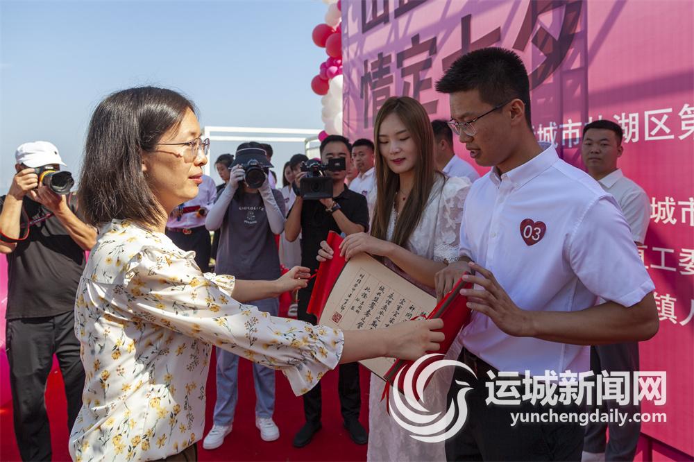 “七夕节”因牛郎织女的美丽爱情传说,成为象征爱情的节日。今年农历七月初七,“山盟海誓 情定七夕”运城市盐湖区第三届婚恋新风教育季活动启动,我们10对新人怀着对未来美好生活的憧憬,在共同踏上人生崭新旅途的节点上,来到美丽的盐湖区东郭镇刘范村,领取了证书、婚书,收获了大家的祝福。我们的家人也在现场见证了我们的幸福,此刻,幸福的热泪洒满“七夕节”!