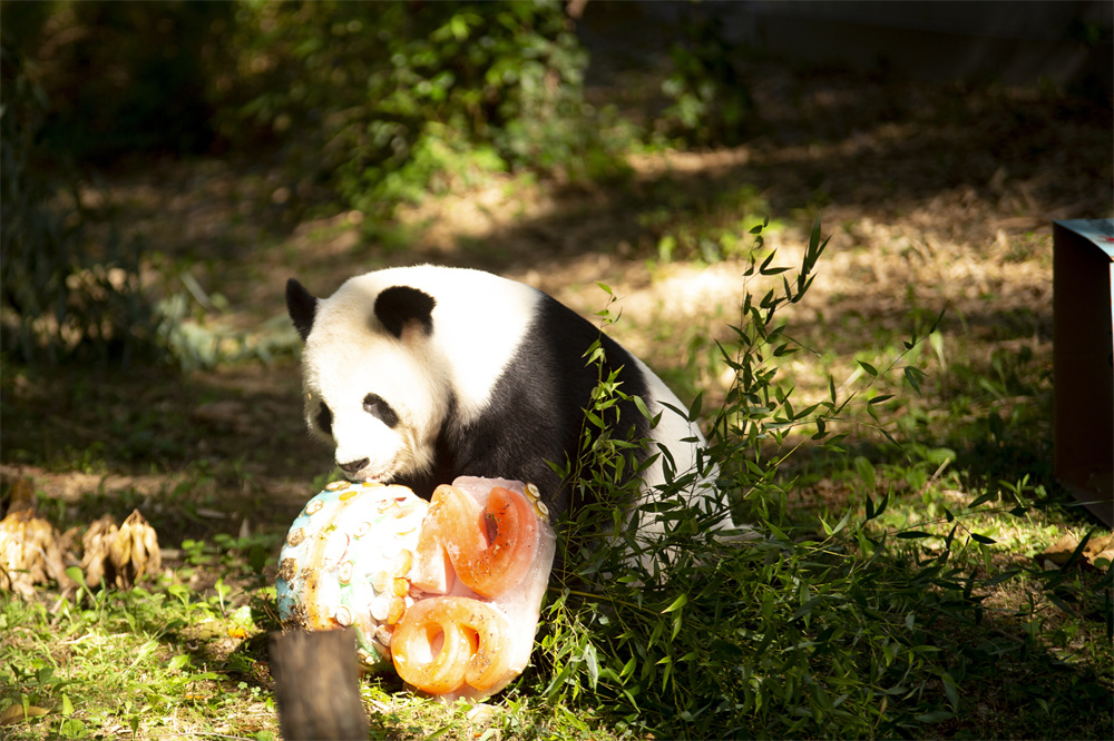 8月27日,大熊猫“添添”在美国首都华盛顿史密森学会国家动物园享用生日蛋糕。当日,雄性大熊猫“添添”在美国首都华盛顿史密森学会国家动物园迎来26岁生日。
