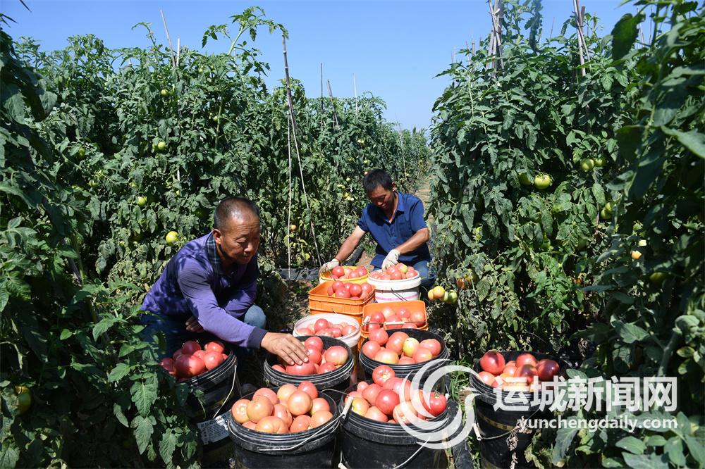 8月30日,闻喜县河底镇葛寨村村民在采摘西红柿。