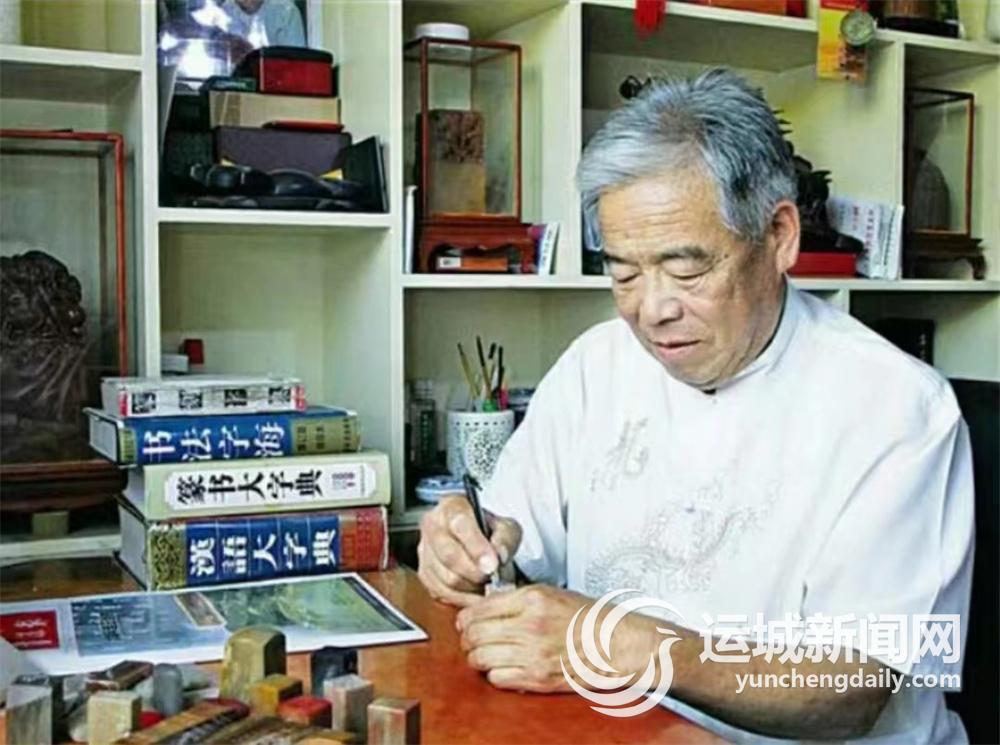 日前,在万荣县篆刻爱好者“玩石翁”杨世珍的工作室,他手持刻刀正在专心为书友篆刻印章。