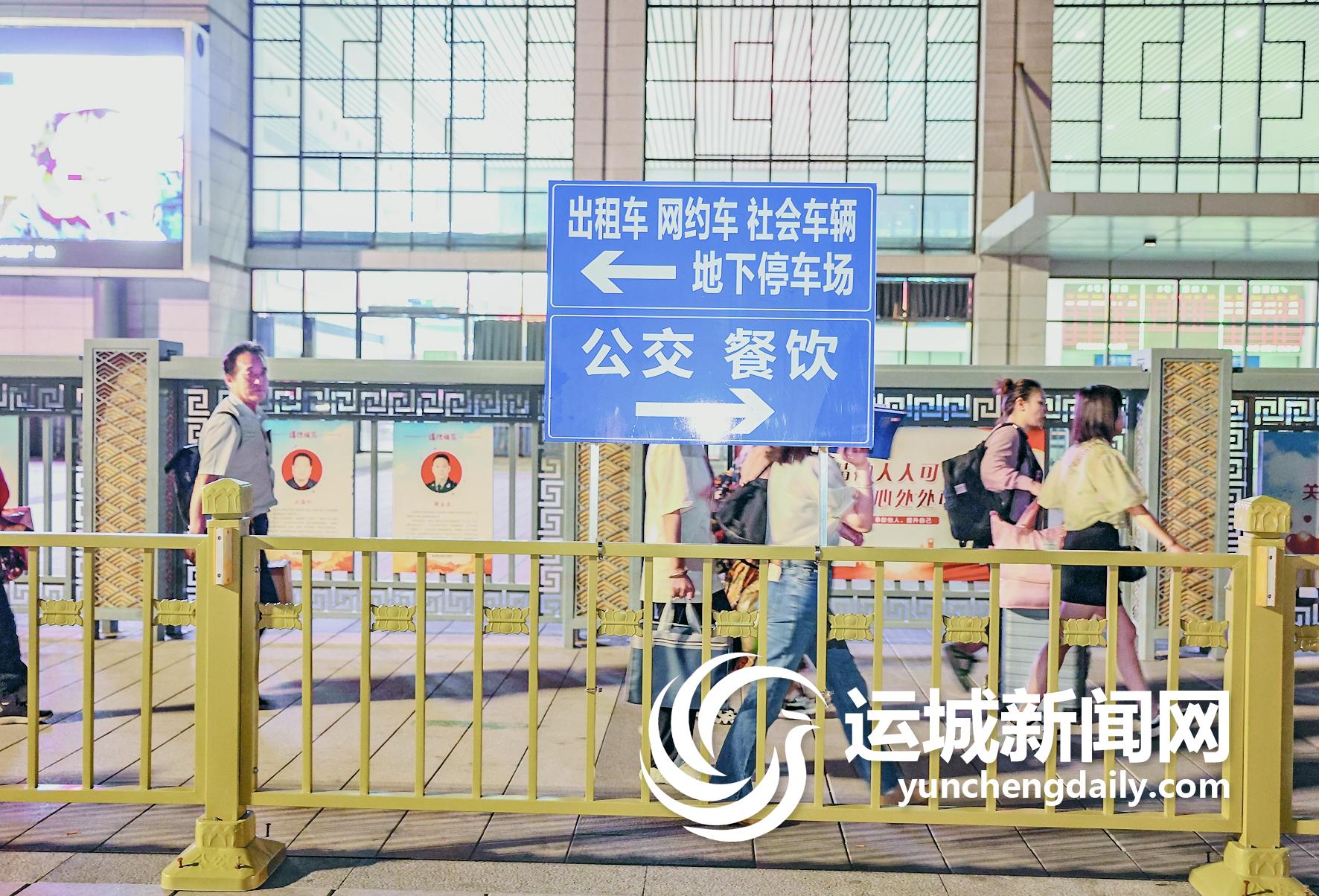 8月25日,记者在运城北站出站口看到,一块悬挂的LED大屏上,显示着旅客搭乘出租车、私家车、公交车等应该前往的方向。在出站口的前方,用隔离栏设置了一条上百米长的引道,帮助指引旅客按需乘车。