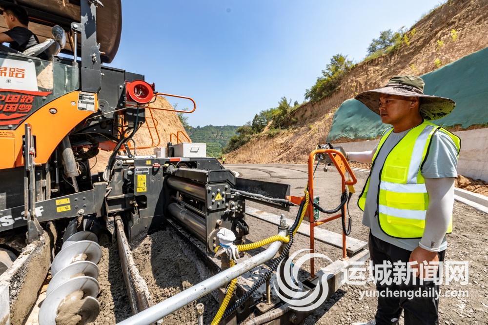 9月2日,在平陆县部官西祁至杜马柳沟段道路改造提升工程施工现场,工人趁着天气晴好抓紧施工。
